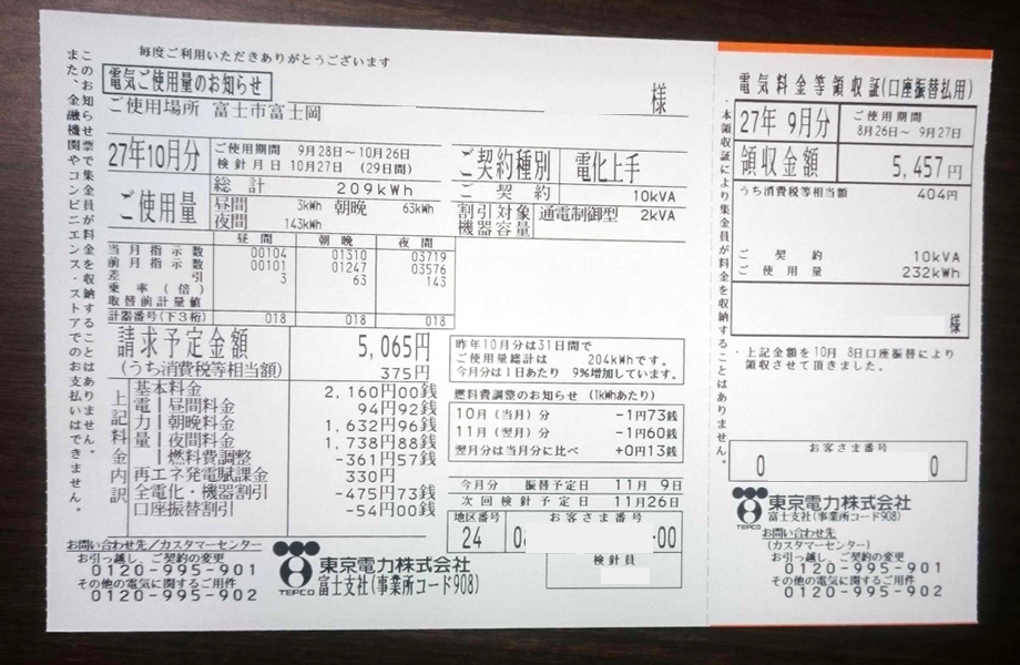 2015年10月分 電気使用料 明細